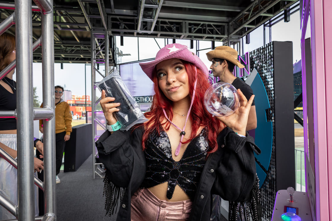 Si te diste una vuelta por el escenario principal del Tecate Emblema seguro te topaste con el SHEIN Fest House. Acá había una activación a la cual todos los asistentes al evento podían entrar y participar por un premio. Solo tenías que girar una ruleta y ver si ganabas una sesión de maquillaje en la Glitter Station, una oportunidad de sacar un premio en una máquina de juegos u otras sorpresas.