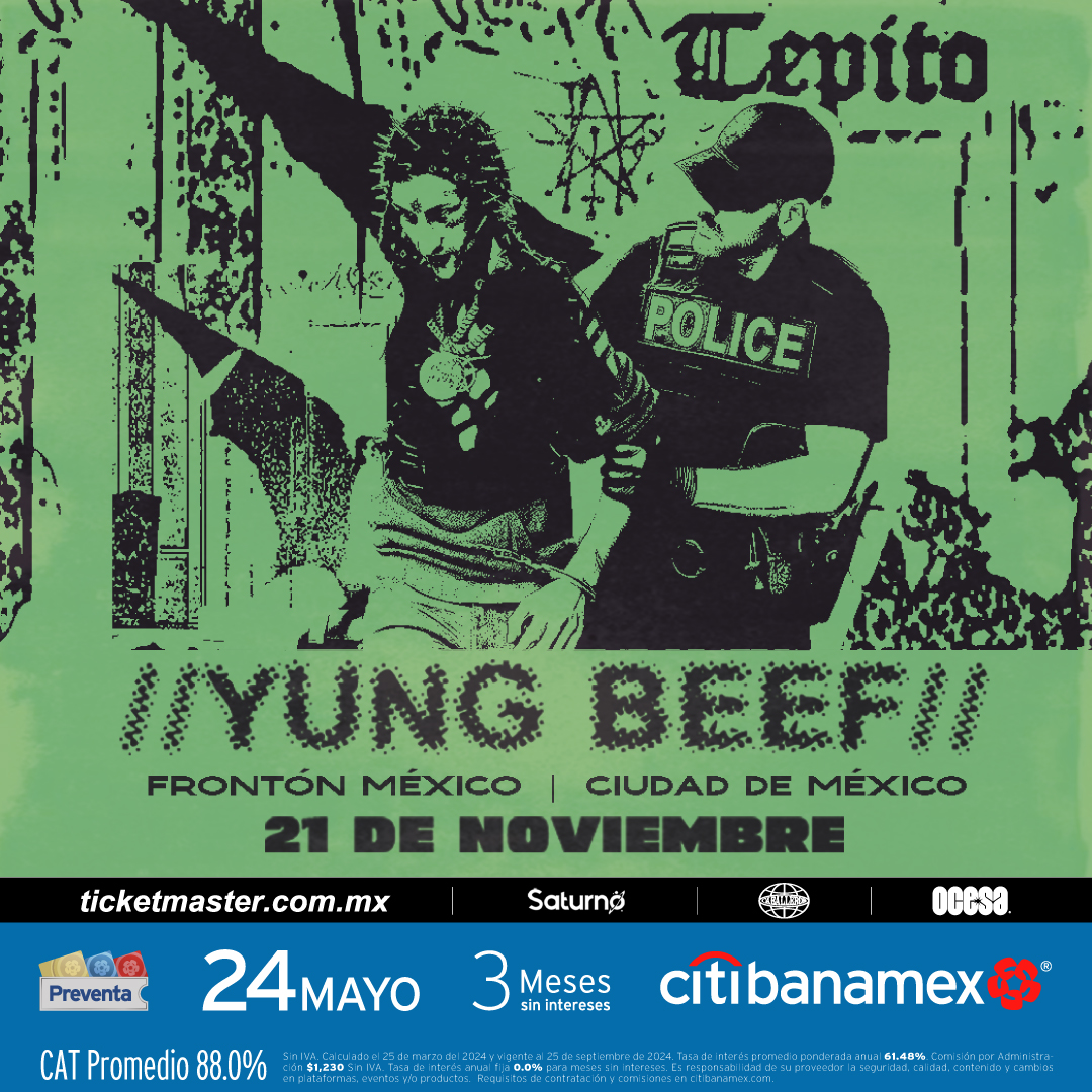 Yung Beef estará en el escenario del Frontón México el próximo 21 de noviembre como parte de su gira por Latinoamérica. Este tour también incluye países como Chile y Argentina, y en cada parada está mostrando lo mejor de su repertorio.