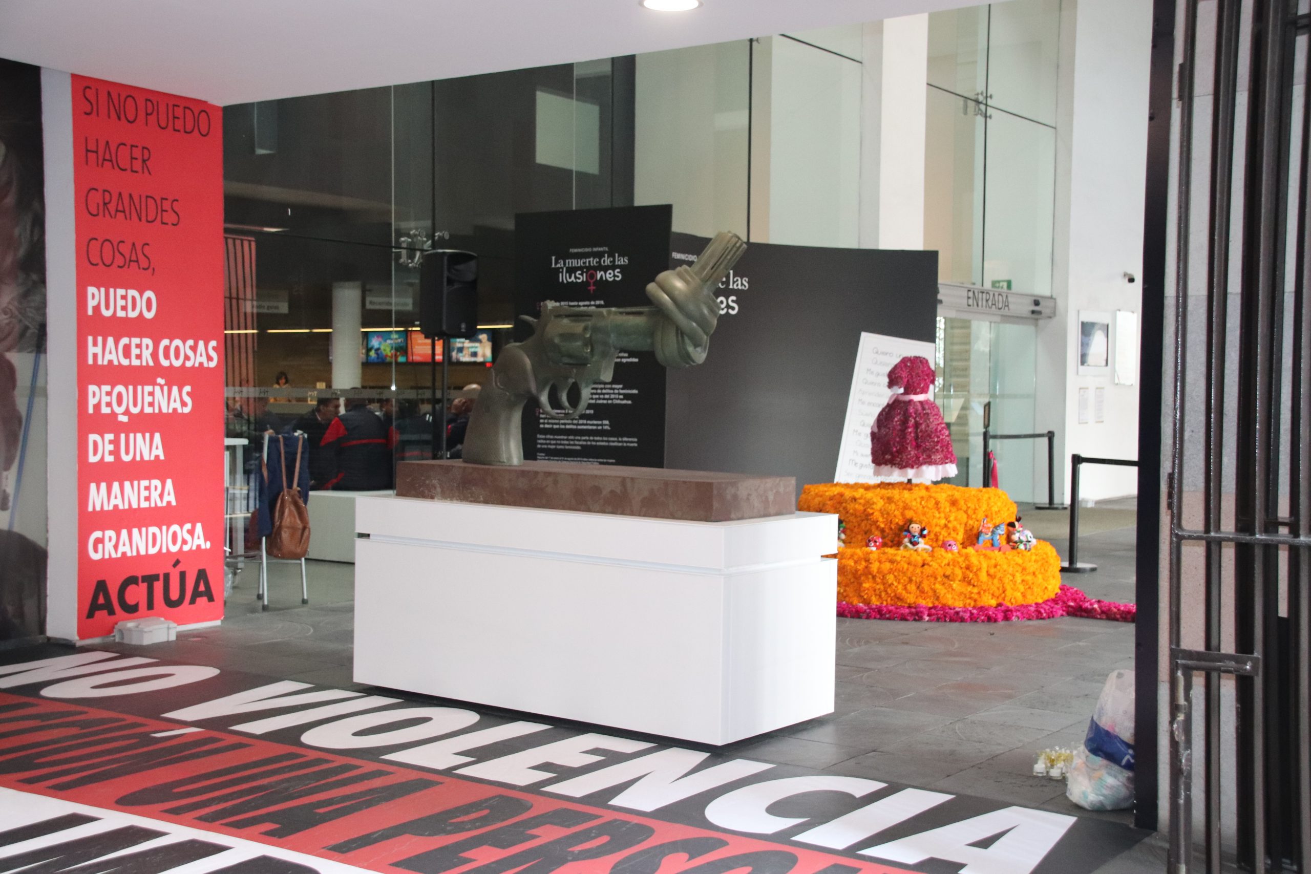 Esta escultura, de la autoría del artista Jorge Marín, está hecha a partir de más de dos toneladas de armas donadas por la ciudadanía en la Campaña de desarme del 2016 realizada por el ejército. El museo te da la bienvenida con esta obra con la que podrás interactuar.