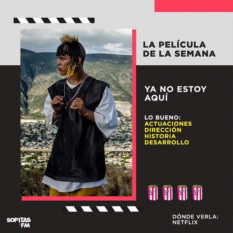 El pasado 27 de mayo de 2020, se estrenó en Netflix la película mexicana Ya no estoy aquí de Fernando Frías de la Parra. Esta película mexicana llegó primero al Festival Internacional de Morelia donde se llevó el premio a Mejor Largometraje Mexicano en la edición de 2019.