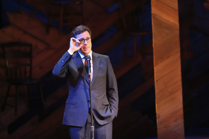 Stephen Colbert agradeció al equipo de producción y mencionó algunas de las cosas que el sindicato de guionistas consiguió como protegerse de la Inteligencia Artificial, mejores pagos de las plataformas de streaming y demás. Obviamente sería estúpido hacer una recapitulación de todo lo que sucedió en los últimos cinco meses. Así que aquí vamos“.