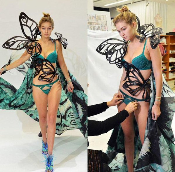 Después saltaron al escenario dos de las nuevas invitadas a esta celebración, Kendall Jenner y Gigi Hadid, quienes son grandes amigas y fueron alcanzadas por ángeles consagradas en este negocio, como Adriana Lima y Candice Swanepoel, así como las australianas Shanina Shaik y Bridget Malcolm, además de Lily Aldridge, esposa de Caleb Followill de Kings Of Leon, quien fue la elegida para portar el Fantasy Bra de 2 millones de dólares, decorado con 6 mil quinientas gemas preciosas, incluyendo 126 diamantes.
