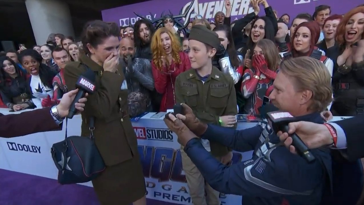 Resulta que ayer, durante la alfombra roja, un hombre vestido de Steve Rogers, o mejor dicho de Capitán América, le pidió matrimonio a su novia, quien iba disfrazada de Peggy Carter. El momento se hizo tendencia en redes sociales y aplaudieron la acción del hombre de sorprender a su novia en un lugar y momento que ambos comparten. Por acá les dejamos algunas de las imágenes del momento.