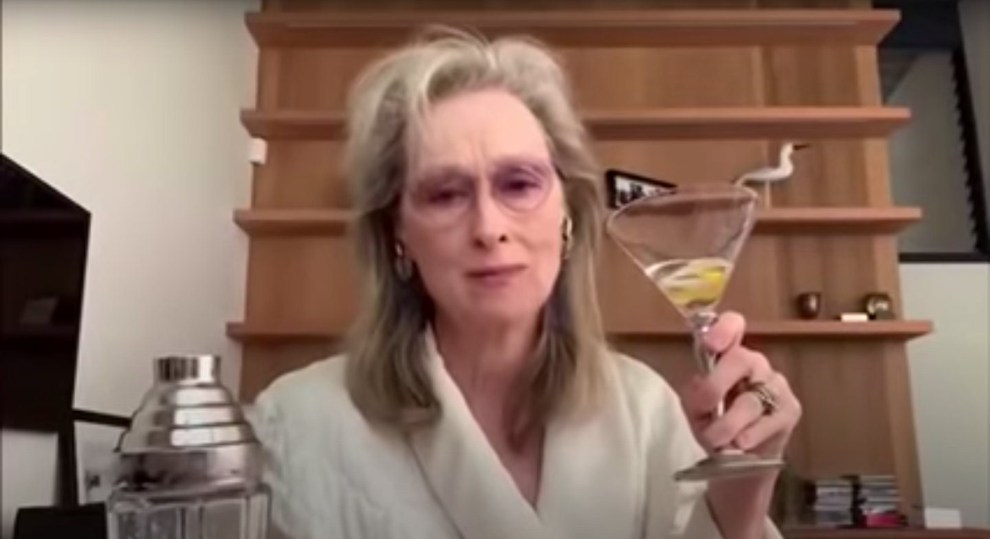 Y es cuando Meryl nos representa a todos y todas en esta cuarentena. Dice “When they get depressed, it’s a bottle of scotch plus a little jest…“, y luego se empina una botella de whisky directo de la botella. Y pues sí, sale vestida en bata y un poco devastada por la situación (ella por la letra y nosotros por la cuarentena).