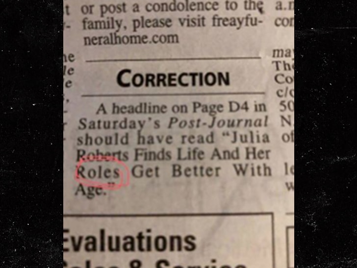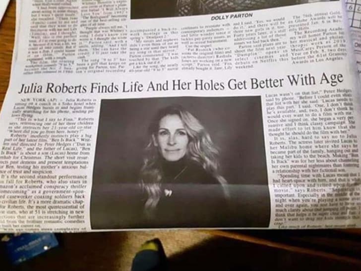 El título que apareció impreso decía: “Julia Roberts Finds Life and Her Holes Get Better With Age”, que en español viene siendo algo como “Julia Roberts encuentra vida y sus hoyos mejoran con la edad” (¡JAJAJAJAJAJA!), ¿entendiste?
