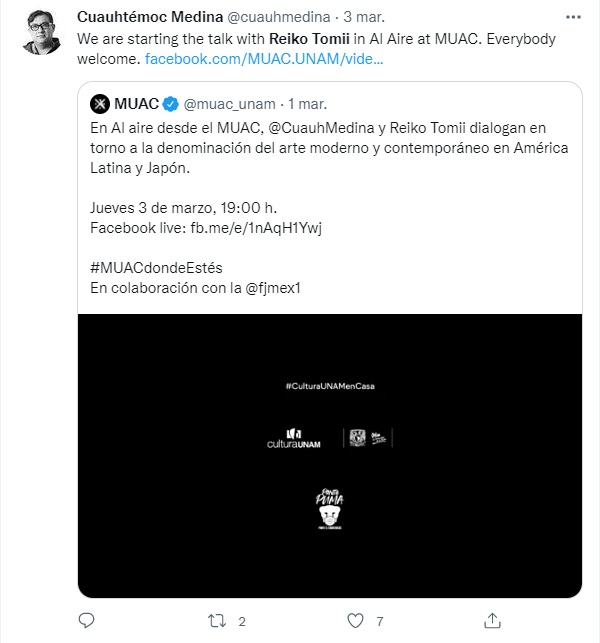 En cuanto a Reiko Tomii respecta, espera que este acercamiento con México pueda servir para encontrar el apoyo necesario para traducir al español su ópera prima, la monografía ‘Radicalism in the Wilderness: International Contemporaneity and 1960s Art in Japan’, publicada por MIT Press en el 2016, misma que se difuminó de las estanterías estadounidenses luego de que la pieza le valiera el premio Robert Motherwell Book Award de 2017 y 2019.