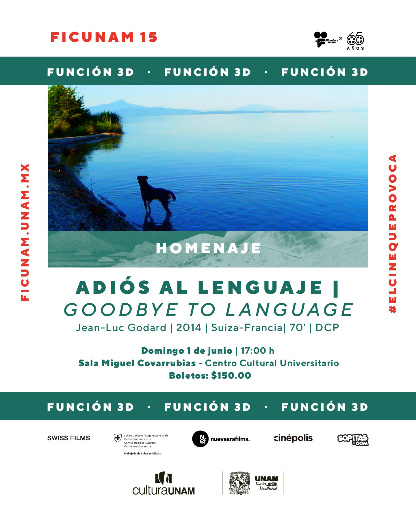 Del 29 de mayo al 5 de junio se llevará a cabo la edición 15 de FICUNAM (Festival Internacional de Cine UNAM). Y una de las actividades más especiales de este año se realiza en colaboración con Sopitas.com y Cinemática: función de Adiós al lenguaje (Adieu au langage) de Jean-Luc Godard.