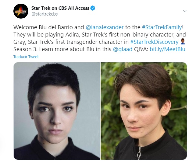 Aunque Alexander, de origen estadounidense, es conocido por su papel de Buck Vu en ‘The OA’ y Lev en ‘The Last of Us Part II’, este será el debut para Blu del Barrio, de orígenes latinos. La cuenta oficial de una de las sagas más antiguas de la televisión, no dudó en mostrar su entusiasmo escribiendo: “¡Damos la bienvenida a Blu del Barrio e Ian Alexander a la familia de Star Trek!”,