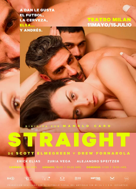 Ya llega la nueva puesta en escena de Manolo Caro, “Straight“, creada por Scott Elmegreen y Drew Fornarola; con la que mostrará la realidad del amor y sus diferentes formas a través de un triángulo amoroso. (Erick Elías, Zuria Vega y Alex Speitzer).