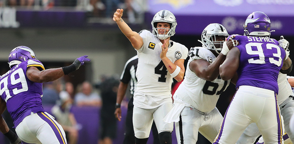 Sin embargo después recibieron a los Kansas City Chiefs y perdieron. En cierta parte se entiende por tener a Patrick Mahomes enfrente pero ahora, en la Semana 3 de la NFL tropezaron ante los Minnesota Vikings. Carr lanzó dos pases de anotación y fue interceptado en una ocasión. Ahora el próximo partido en casa de los Colts luce vital.