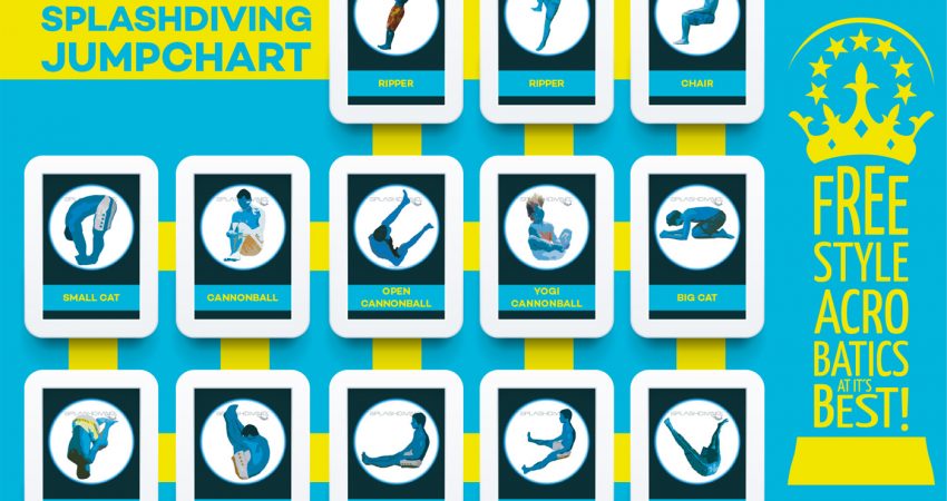 Los clavadistas, pueden caer al agua en 13 diferentes estilos que van desde el tradicional “Cannonball”, caída de pompas, el “Bigcat”, que consiste en inmergir a gatas, hasta el “potato”, que implica caer de cabeza, que debe doler hasta la ídem. Sin embargo, los competidores ponen todo el ímpetu para sacar la calificación perfecta.