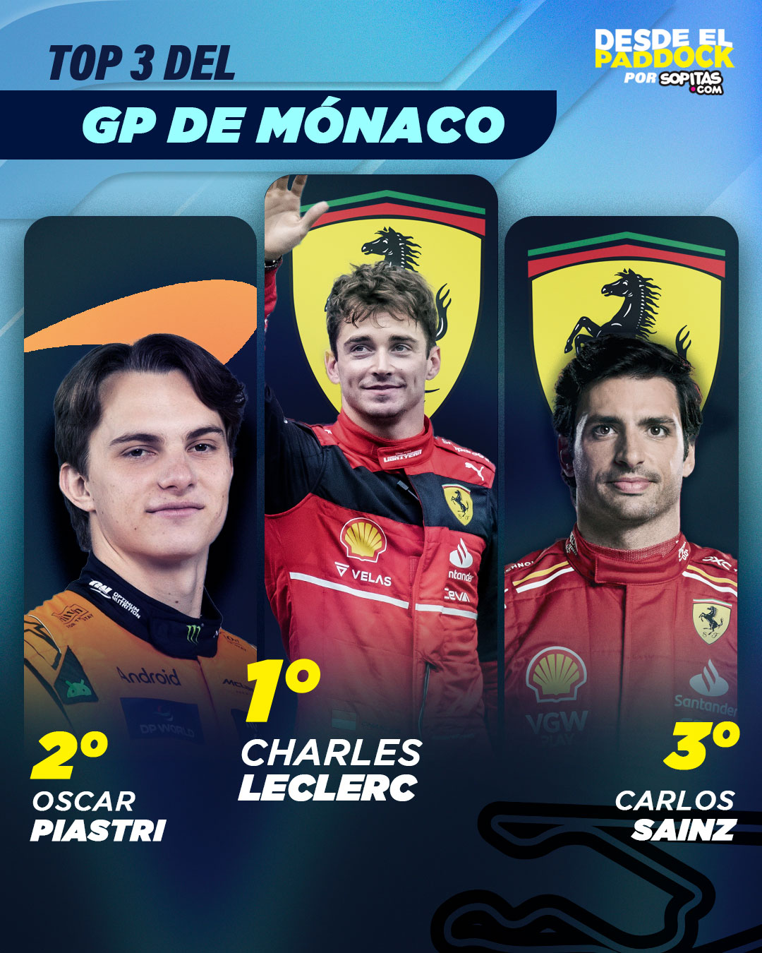 Leclerc fue acompañado en el podio por Oscar Piastri, de McLaren, y Carlos Sainz, de Ferrari, mientras que Lando Norris quedó en cuarto lugar, lo cual son malas noticias para Checo, que cayó hasta el quinto lugar de la clasificación de pilotos.