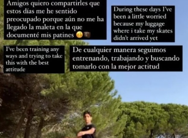 “Amigos, quiero compartirles que estos días me he sentido preocupado porque aún no me ha llegado la maleta en la que documenté mis patines”, comentó Donovan Carrillo junto a un video en el que enseñó cómo entrenaba pese a no contar con sus herramientas de trabajo.