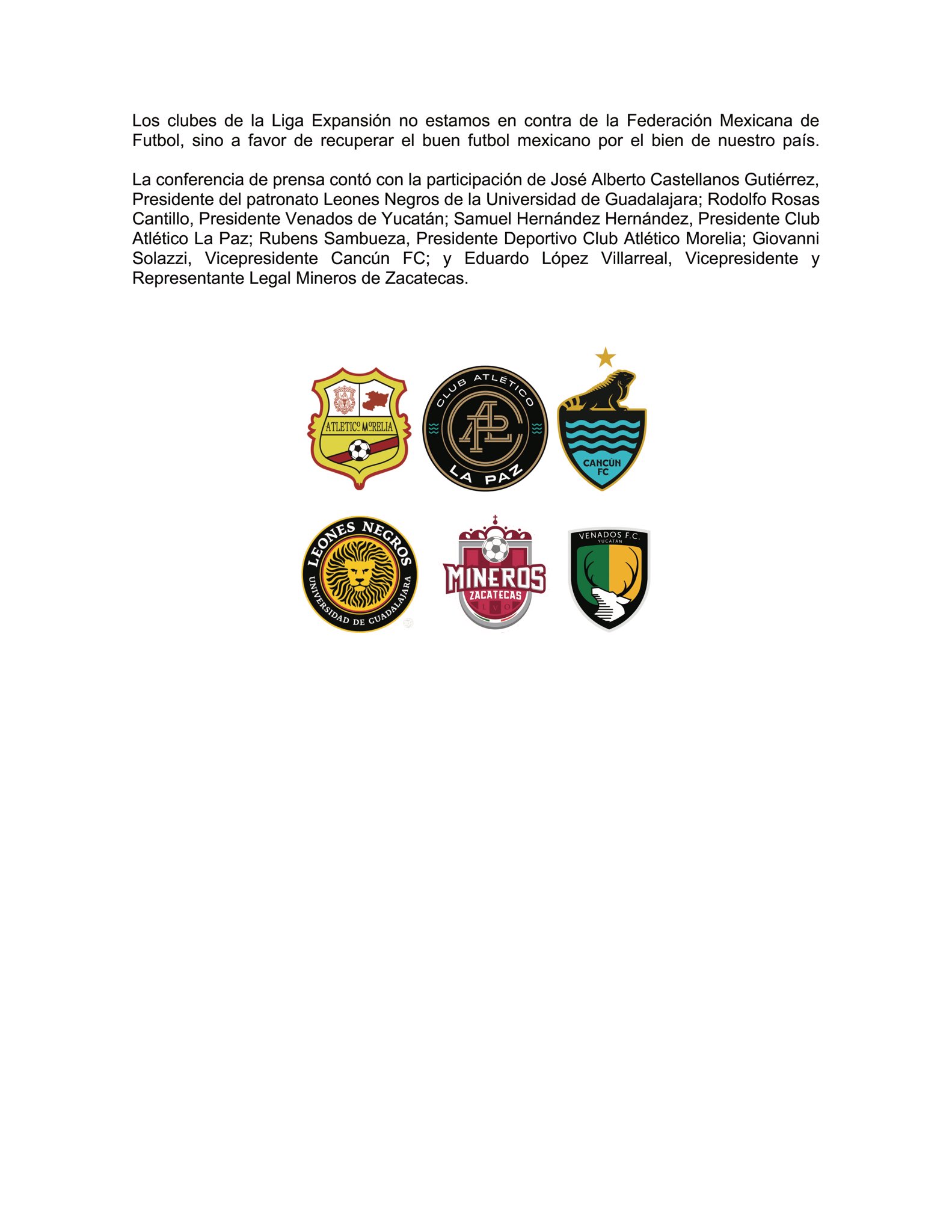“En represalia por levantar la voz contra la estructura que administra el futbol mexicano y al hacer pública nuestra apelación internacional, a los equipos de la Liga Expansión se les retiró el subsidio anual de 20 millones de pesos por club, recurso que proviene de multas impuestas a integrantes de la Liga Mx en contraprestación por cerrar el ascenso“.