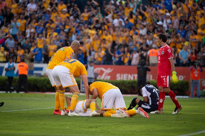 Tigres batalló para conseguir el primer tanto en la Semifinal de Vuelta en el clásico regio contra Monterrey y cuando éste llagó, el drama también se hizo presente en la cancha del Volcán tras un fuerte impacto de Guido Pizarro en la jugada del gol.