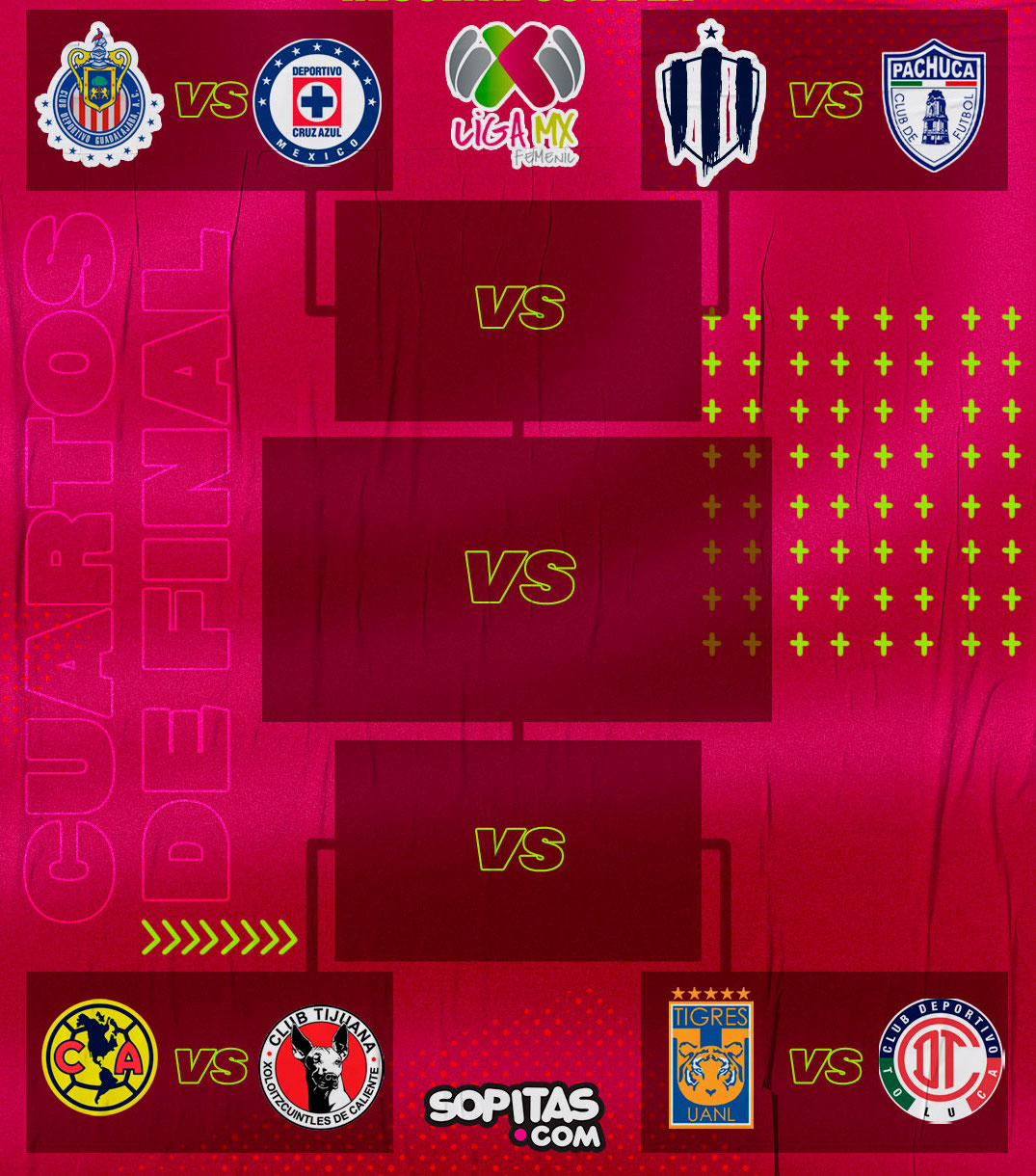 Los equipos en cuestión son Chivas, Monterrey, América y Tigres. De esta manera, los conjuntos regiomontanos llegan a una fase final sin ser los favoritos, como había sucedido en campañas anteriores.