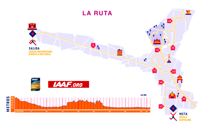 Para esta edición la edición sigue siendo la misma, aunque tendrá cambios en el sentido que comenzará donde antes terminaba, pues el maratón arrancará en las inmediaciones del Estadio Olímpico Universitario y finalizará en el Zócalo capitalino.