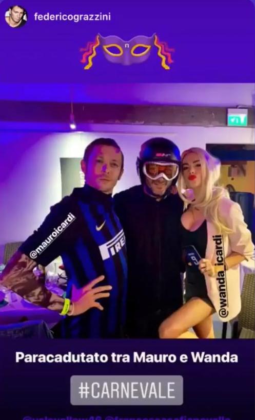 La pareja aprovechó la ocasión de los carnavales para disfrazarse de la pareja argentina del Inter de Milán, equipo del cual es un fiel seguidor el motociclista de 40 años.