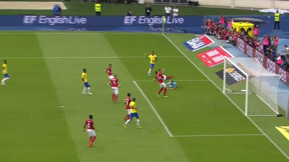 Austria trató de presionar al cuadro sudamericano, incluso tuvieron una opción clara de gol al minuto 21, que no pudieron hacer valer entre Schopf y Lainer, quienes realizaron una pared para desbordar dentro el área antes de mandar un centro para Arnautovic que remató por encima del marco. Estuvieron cerca, pero no contaban con la magia de la ‘Canarinha’, que minutos después, marco el primer tanto.