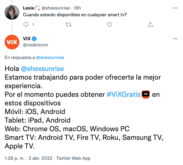 Contrario a lo que se dijo el día del anuncio, ViX no está disponible para todas las televisiones Smart TV y en consecuencia, tampoco los contenidos de la Liga MX Femenil Nosotros intentamos descargarla en tres marcas diferentes, pero ninguna muestra la aplicación en su respectiva tienda. Asimismo, en redes sociales hubo comentarios sobre la misma situación y la cosa es que no se trata de un problema de la televisión, sino de la promesa que se hizo con el cambio.