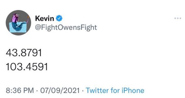 Además, Kevin Owens, siempre con estilo ácido y sarcástico de ser en su personaje, subió un tuit con unas coordenadas, que después borró. La ubicación que compartió era del Monte Rushmore, curiosamente, en su tiempo de luchador independiente tenía un grupo llamado así junto con the Young Bucks y Adam Cole, ¿Guiño a AEW?