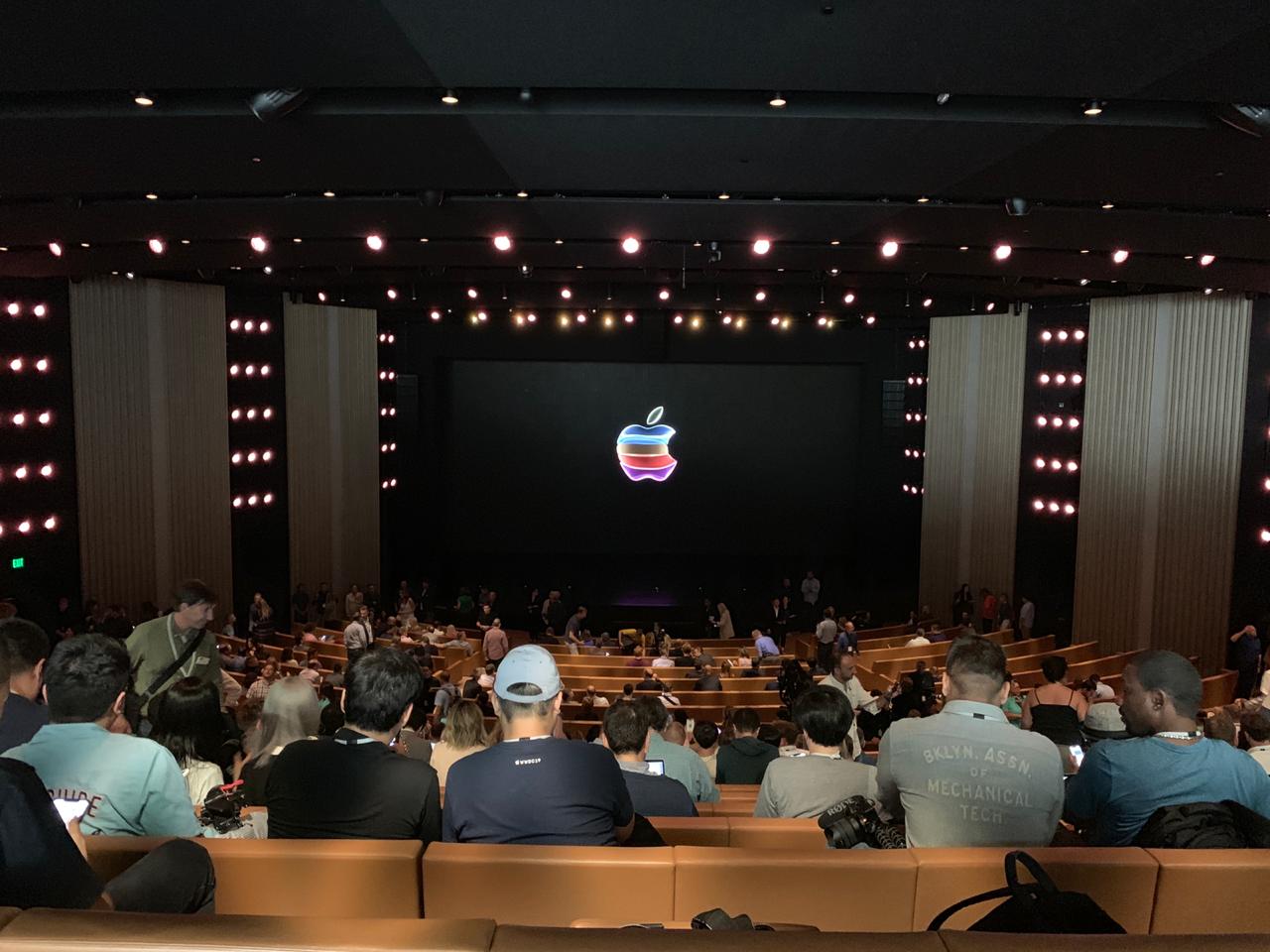 Ya adentro del Steve Jobs Theater. Vienen medios de todo el mundo y el lugar poco a poco comienza a llenarse. ¡A punto de empezar!