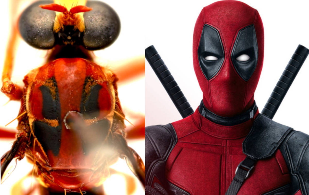 La mosca Deadpool es un Humorolethalis sergius que comparte características con el superhéroe que encarnó el actor Ryan Reynolds, con la pequeña diferencia de que esta diminuta mosca, es en realidad un insecto asesino que cuenta con marcas rojizas en la espalda, las cuales se asemejan a la máscara de Deadpool.