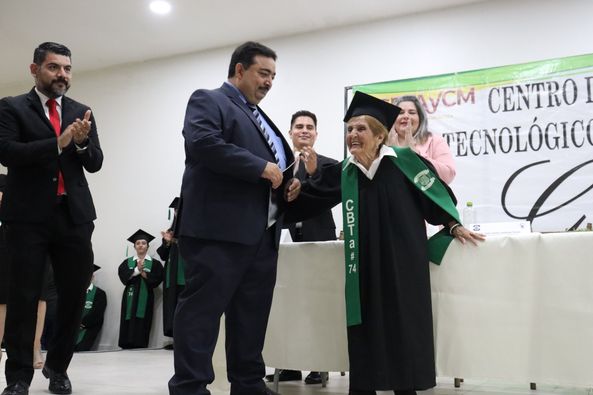 En las imágenes se puede ver a la abuelita sumamente contenta recibiendo su diploma por parte del director del CBTA. Sin embargo, en este gran evento no podía faltar la familia de la señora Irma, quienes evidentemente estaban muy contentos por este logro tan importante en su vida. Y por supuesto que la señora se tomó fotos con sus compañeros y posando con su toga y birrete por la escuela.