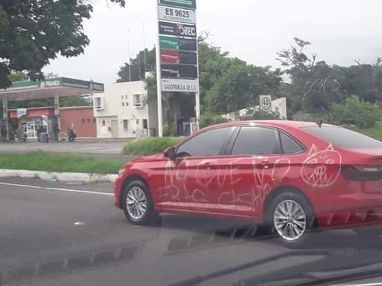 Resulta que, supuestamente, una mujer bastante sulfurada y despechada, quiso tomar venganza en contra de su pareja/amante/loquesea por haberla engañado y rayoneó con aerosol casi todo el auto del rompecorazones. Literal, de la puerta delantera a la cajuela. Ouch… uno como quiera, pero… ¿y los autos qué culpa tienen?
