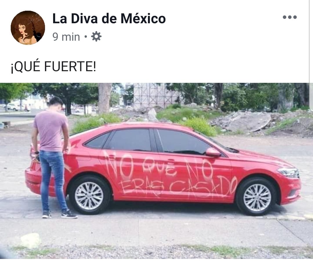 “¿No que no eras casado?“, fue el mensaje que la mujer escribió en el Jetta rojo, ah pero eso sí, le metió un dibujo bieeeen creativo de un cerdito enojado, digno de un Open House de Kinder.