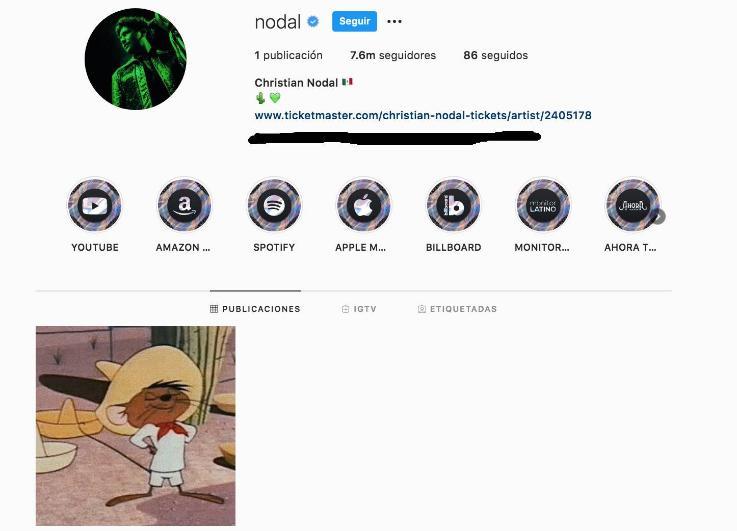 Resulta que durante el sábado 21 de agosto los seguidores del cantante mexicano se percataron que cambió su foto de perfil y borró casi todas sus publicaciones en Instagram, donde ahora solo hay una imagen de Speedy González, personaje animado de los Looney Tunes que es uno de los favoritos de Nodal.