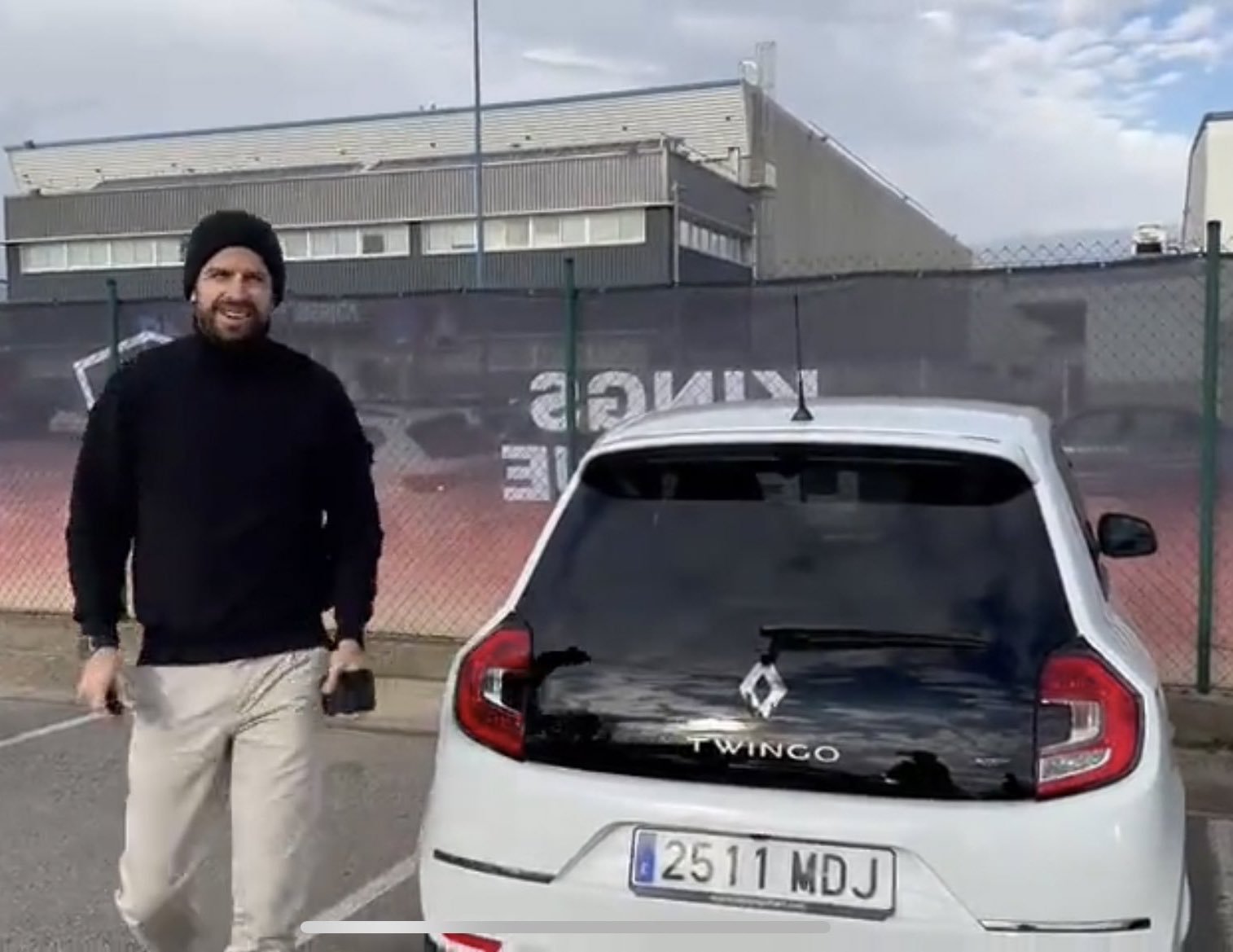 Piqué llegando en un Twingo