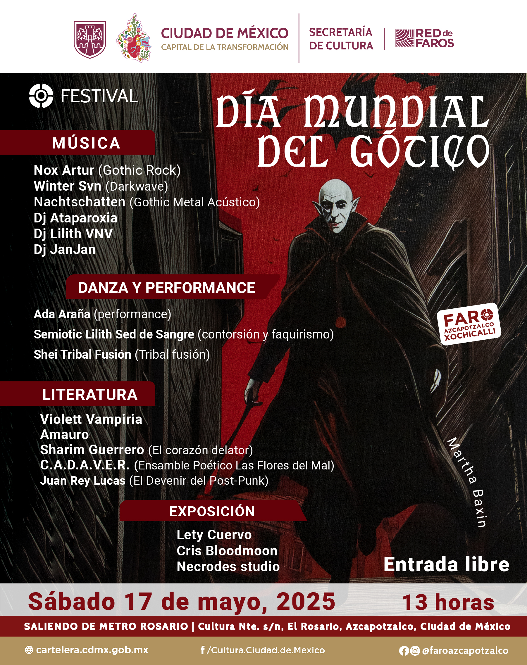 “Bandas, DJs, poetas y performers darán vida a una experiencia única que va del darkwave a la poesía vampírica, del performance a la contorsión ritual”, señala la Secretaría de Cultura de la capital.