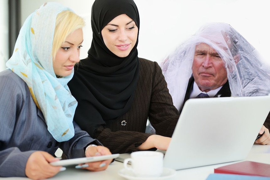 Finalmente, después de una ardua lucha para intentar taparse, el señor Bush se resignó y decidió dejar todo el asunto atrás. Pero, ¿saben quién no pudo superar la derrota? Todos los chicos y chicas de Reddit que tomaron las imágenes de lo sucedido y comenzaron a hacer sus aportes photoshoperos.