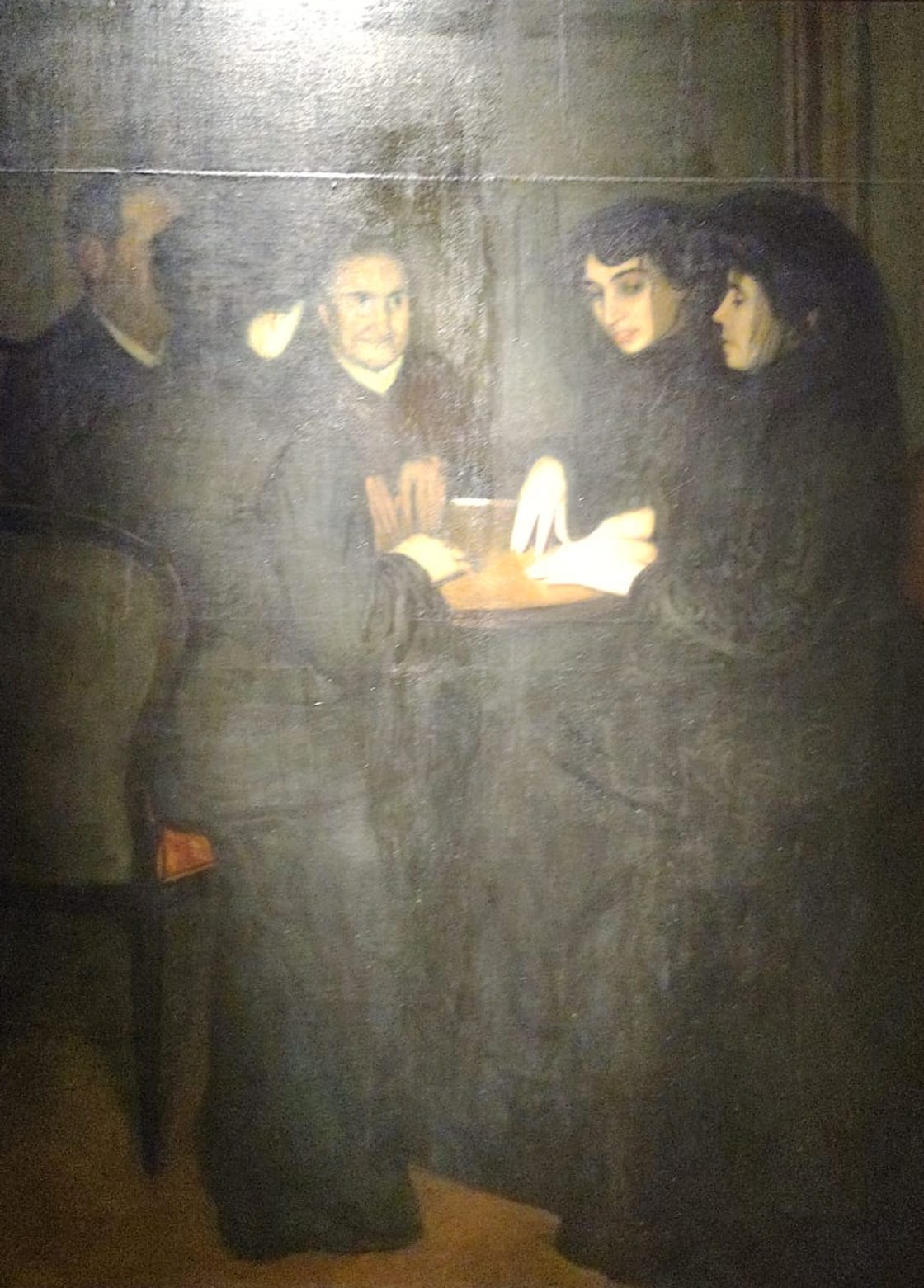 Más de 200 obras conforman esta nueva exposición del MUNAL, la cual está dividida en cuatro partes, comenzando por la que habla de la nigromancia y el arte de invocar a los muertos, donde se nos cuenta que Madero era fan del espiritismo, así como muchas mexicanas y mexicanos en los siglos XIX y XX, ya que organizaban sesiones espiritistas como se ve en la pintura “Las Espiritistas” de Juan Téllez, pero también en revistas y reportajes fotográficos.