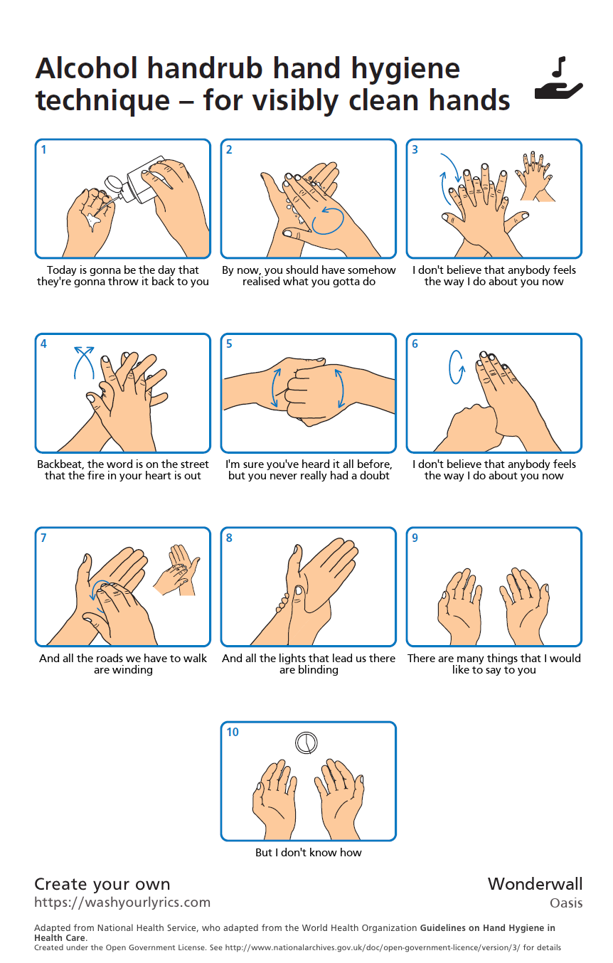 Si bien la técnica es sencilla, en redes sociales han comenzado a circular varias infografías con letras de canciones que te ayudan a lavarte las manos de forma correcta y durante el tiempo que requiere el hacerlo. Seguramente las has visto pero lo que probablemente no sabías es que tú puedes hacer tus propias infografías, enfocándolas ya sea en el uso de gel antibacterial o en el lavado de manos con jaboncito. ¡Órale!