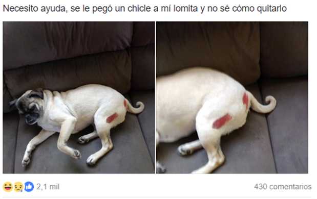 Lo decimos por el caso de una usuaria de Facebook, quien luego de ver que su perrita tenía un chiclote pegado en la parte de atrás, decidió escribir en un grupo de la red social para que alguien le ayudara con su pequeño gran problema. Como era de esperarse, la ayuda llegó en forma de memes, porque pues internet. Acompáñennos a leer esta triste y graciosa historia: