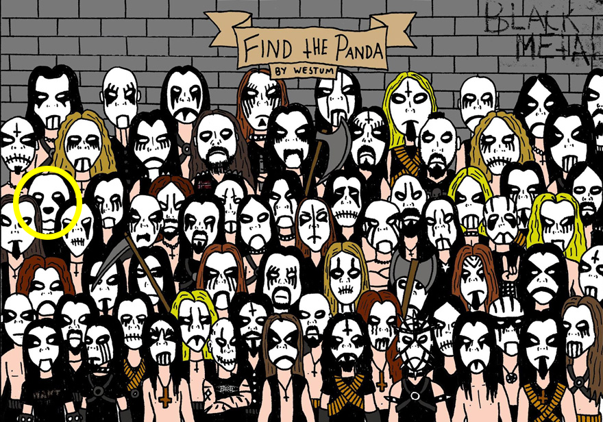 En esta ocasión, les traemos un reto visual que involucra a un panda sumamente rudo y a varios fanáticos de black metal. Sabemos que aquellos que aman los guturales y letras con tintes satánicos se caracterizan por muchas cosas, pues además de traer la greña larga, escuchar riffs bien ponchados y seguir a un montón de bandas europeas que marcaron este género, es inevitable no reconocerlos con el maquillaje blanco y negro (o corpse paint, como le llaman).