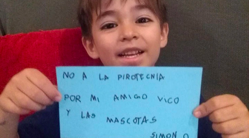 Con la ayuda de su mamá, este pequeño héroe hizo cientos de fotocopias con el siguiente mensaje escrito “No a la pirotecnia, por mi amigo Vico y las mascotas“, y después salió a repartirlos a las calles de Río Negro, en Argentina, todo con la finalidad de pedirle a las personas que en estas fechas no quemen pirotécnica, ya que además de afectar a las personas con autismo, también le hacen daños a las mascotas y a personas con problemas cardiacos.