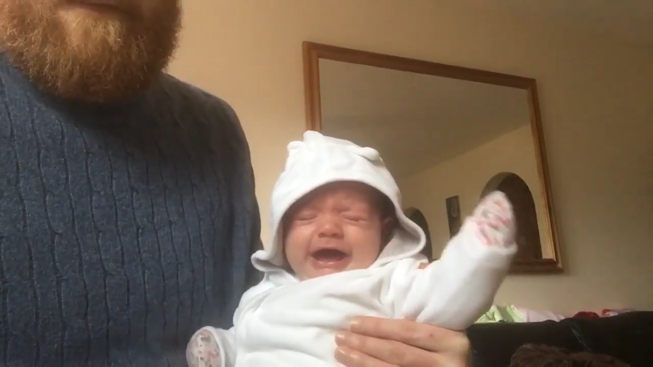 En el video se observa que la bebé, quien al principio lloraba sin parar, deja el llanto de lado una vez que comienza a escuchar las primeras notas de la canción. Lo increíble es que se mantiene atenta a lo que escucha mientras su papá la menea.