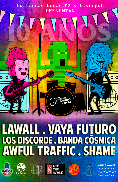 Esta ocasión con mucho gusto recomendamos el 10ª aniversario de Guitarras Locas, un colectivo de amigos que bajo su propio esfuerzo han creado diversos eventos en Tlaxcala con la única comitiva de dar difusión al talento local. Realizar un evento no es tarea fácil, pero cuando llevas 10 años en esto indudablemente debe ser satisfactorio el continuar en el mismo camino, así que indudablemente la celebración debe ser en grande, y sí que lo es.
