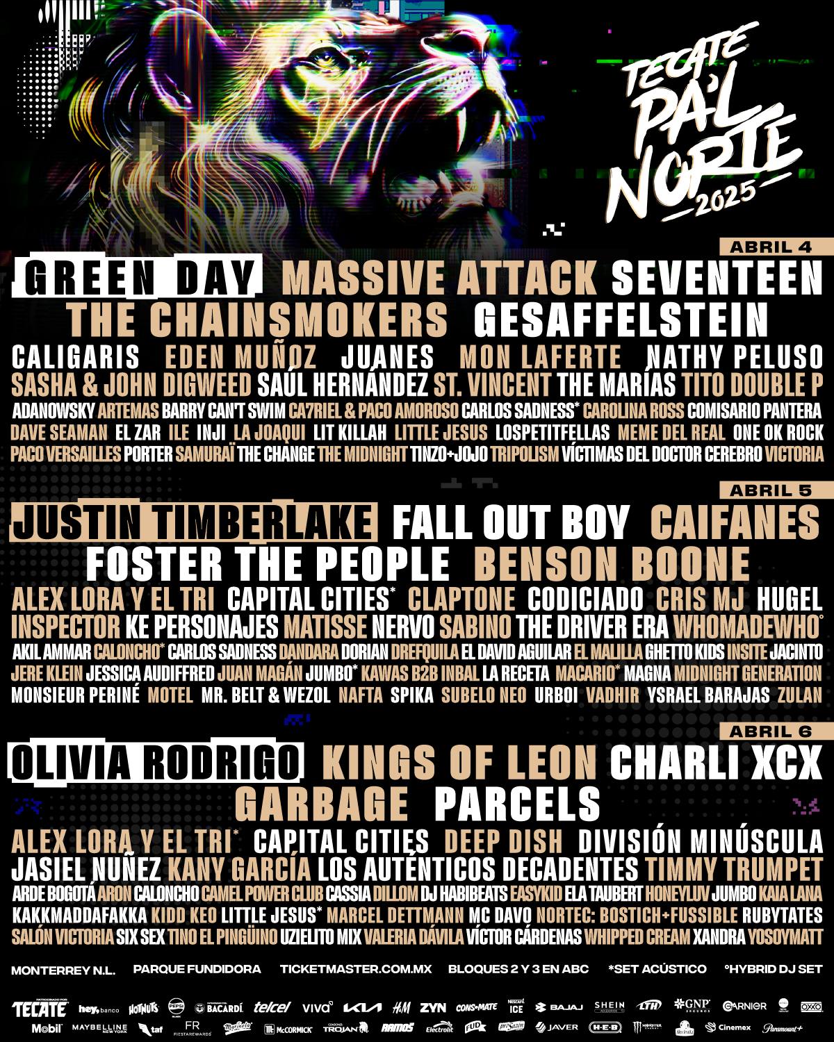Una vez más, Tecate Pa’l Norte nos sorprendió con el cartel que armó para 2025, pues en esta edición, su lineup lo encabezaron actos del tamaño de Green Day, Massive Attack, Justin Timberlake, Fall Out Boy, Foster The People, Olivia Rodrigo, Kings of Leon, Charli XCX, Garbage, Parcels entre muchos otros. Sin duda, fueron tres días alucinantes en la tierra de la carnita asada.