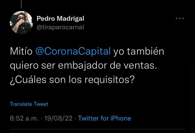 Como dicen nuestras abuelitas “más pronto cae un hablador que un cojo”, pues muchos se quejaron directamente en las redes del Corona Capital e incluso preguntaron si podían entrarle al mismo negocio que esta tuitera, en plan de un programa para vender boletos o como embajadores del festival.