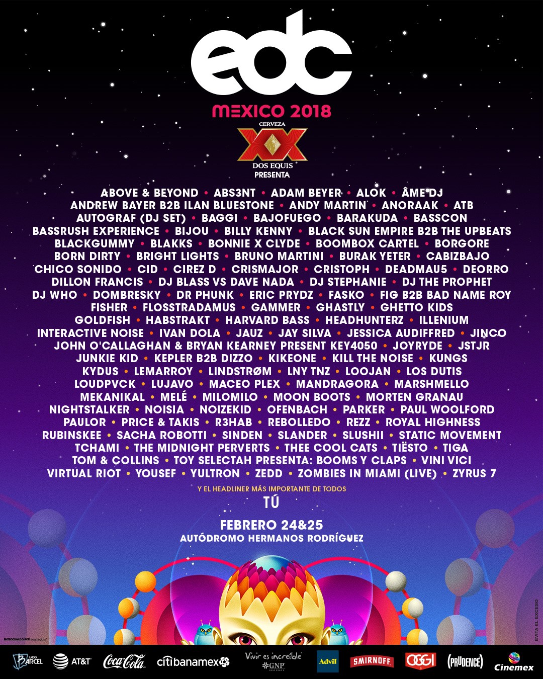 En México se celebrará la 5ª edición y ante la gran espera de los seguidores de este festival, hoy el line up ha sido revelado. Cabe mencionar que este evento regresa al Autódromo Hermanos Rodríguez de la CDMX el sábado 24 y domingo 25 de febrero de 2018. Más de 120 artistas icónicos de la música dance tomarán los siete impresionantes escenarios durante dos noches música y muuuuucho baile. De igual manera que los años pasados, habrá juegos mecánicos, e instalaciones artísticas. Los boletos para este monumental festival están disponibles aquí