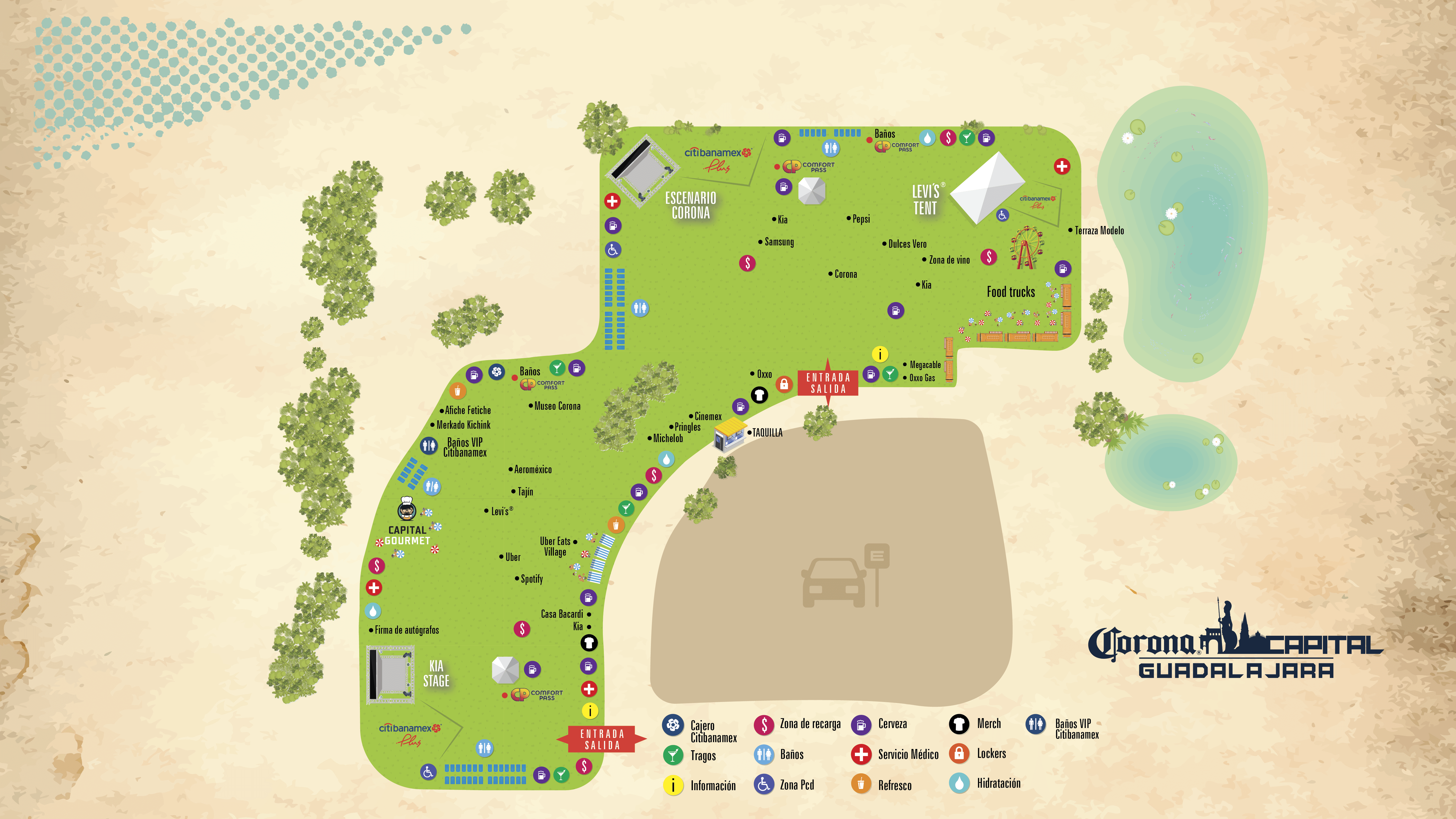 Para que no te nos vayas a nortear y terminar atrás del Muro, te dejamos aquí el mapa de los escenarios y cualquier centro de venta dentro del Corona Capital Guadalajara 2019.