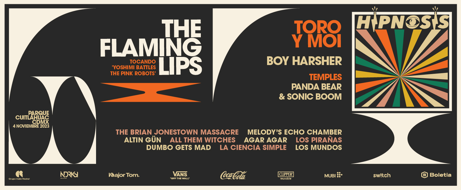 The Flaming Lips, Toro y Moi, Boy Harsher, Temples y el combo de Panda Bear & Sonic Boom encabezan Hipnosis 2023, un nutrido evento que, por primera vez, se realizará en el Parque Cuitláhuac de la alcaldía Iztapalapa. Vaya que ya hacía falta un gran acontecimiento musical en esta parte de la ciudad, ¿apoco no?