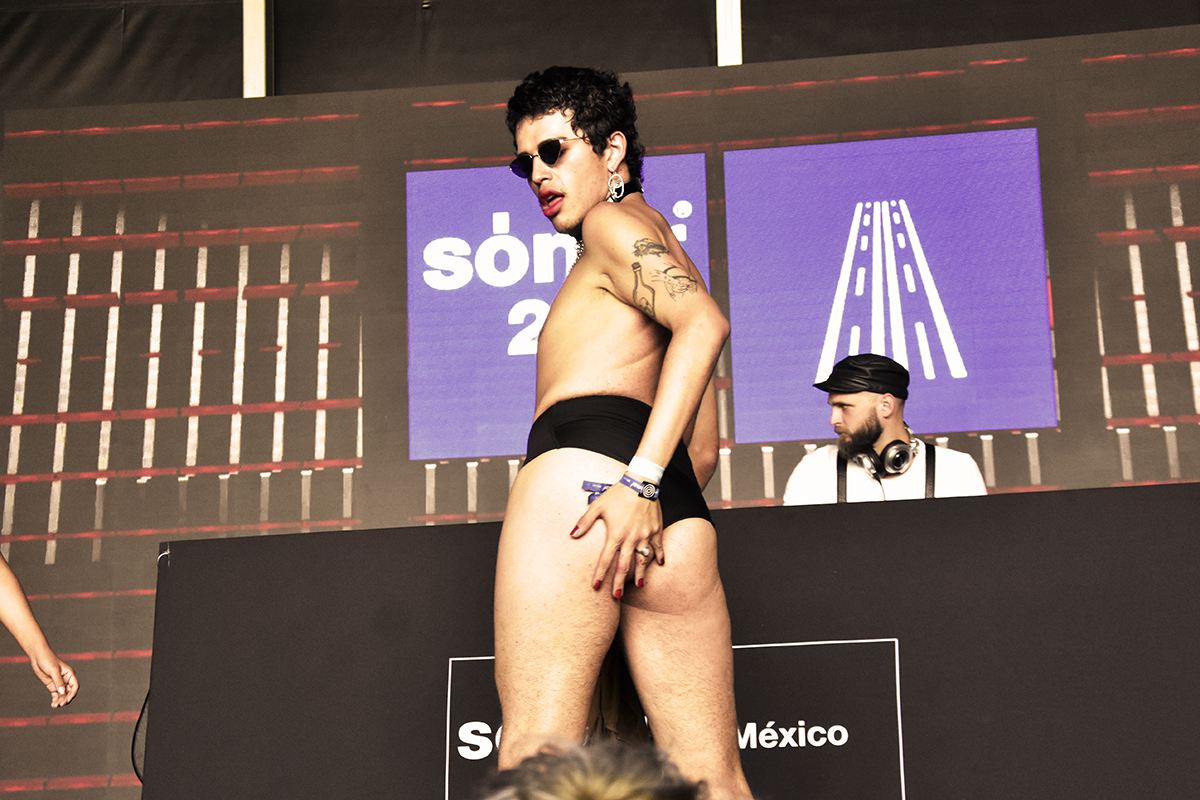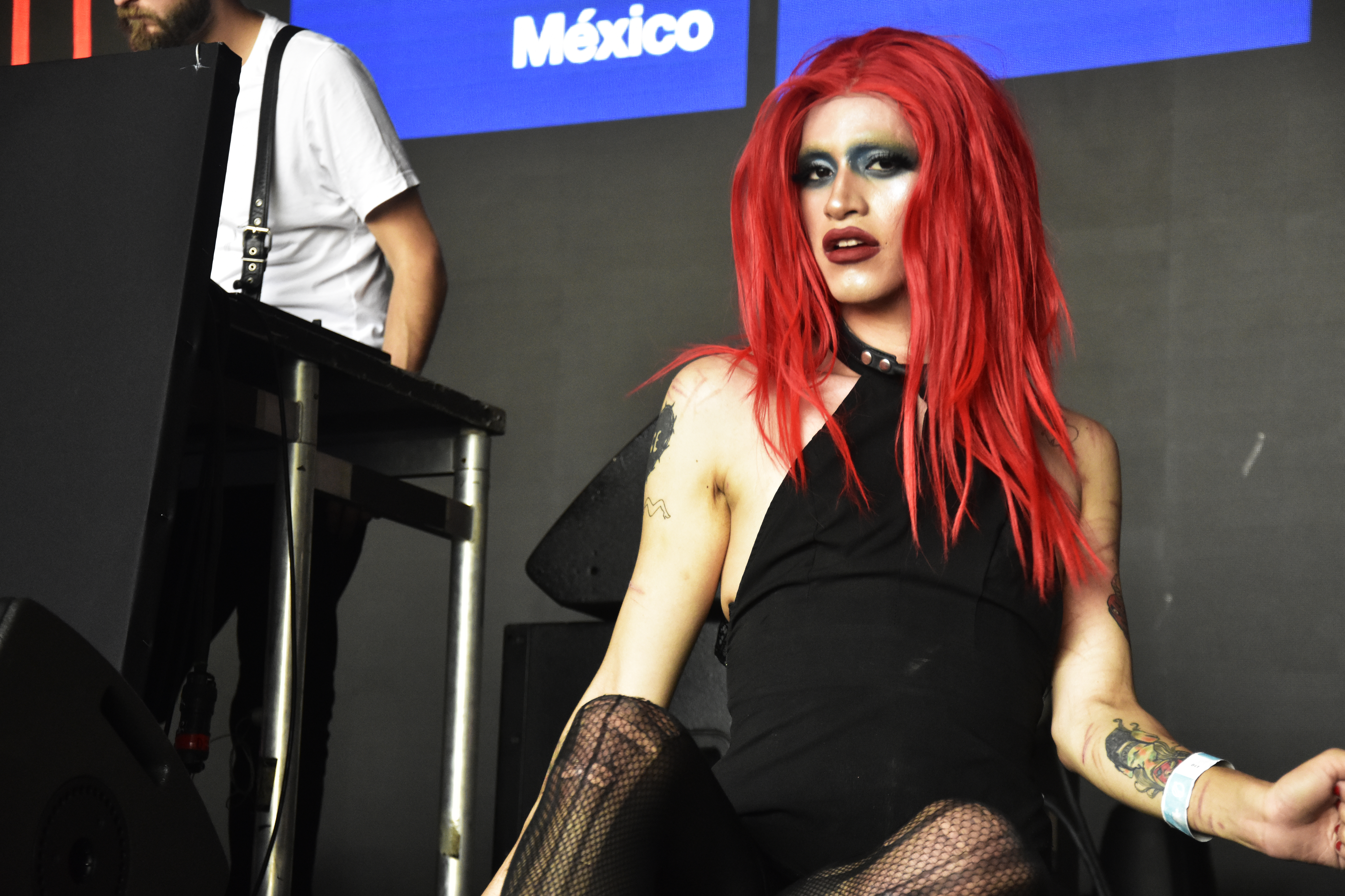 El inicio del festival fue muy sorprendente y lo abrió Perfect Lovers, un DJ canadiense pero con residencia en México. Su propuesta es bastante interesante, mezclar la oscuridad industrial del techno puro con sonidos latinos. Además de la parte musical, que es muy importante, algo que hace únicos sus shows es que complementa la parte musical con una puesta en escena con varios artistas queer.