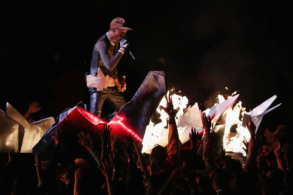 Y de pronto… ¡la imagen de Bob Esponja se puso en el escenario! …pero no era para interpretar “Sweet Victory” sino para que Travis Scott saliera al escenario con mucho fuego y parafernalia. El rapero estadounidense comenzó a interactuar y a bailar junto a Adam, para terminar con un crowdsurfing.
