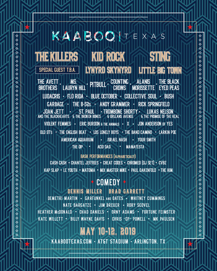 Y para agregar otro más a la lista, hace su debut KAABOO Texas a llevarse a cabo los dias 10 al 12 de mayo en la ciudad de Arlington (Dallas) TX en el Auditorio AT&T, casa de los Dallas Cowboys.