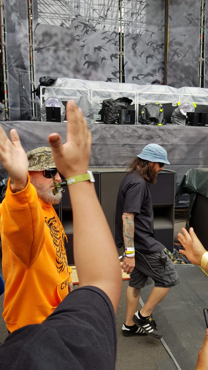 Y es más… Fred Durst hasta bajó del escenario para saludar a la gente. El show de Limp Bizkit promete y mucho. Acá van unas fotos de cuando saludó a los fans en el pit de foto.